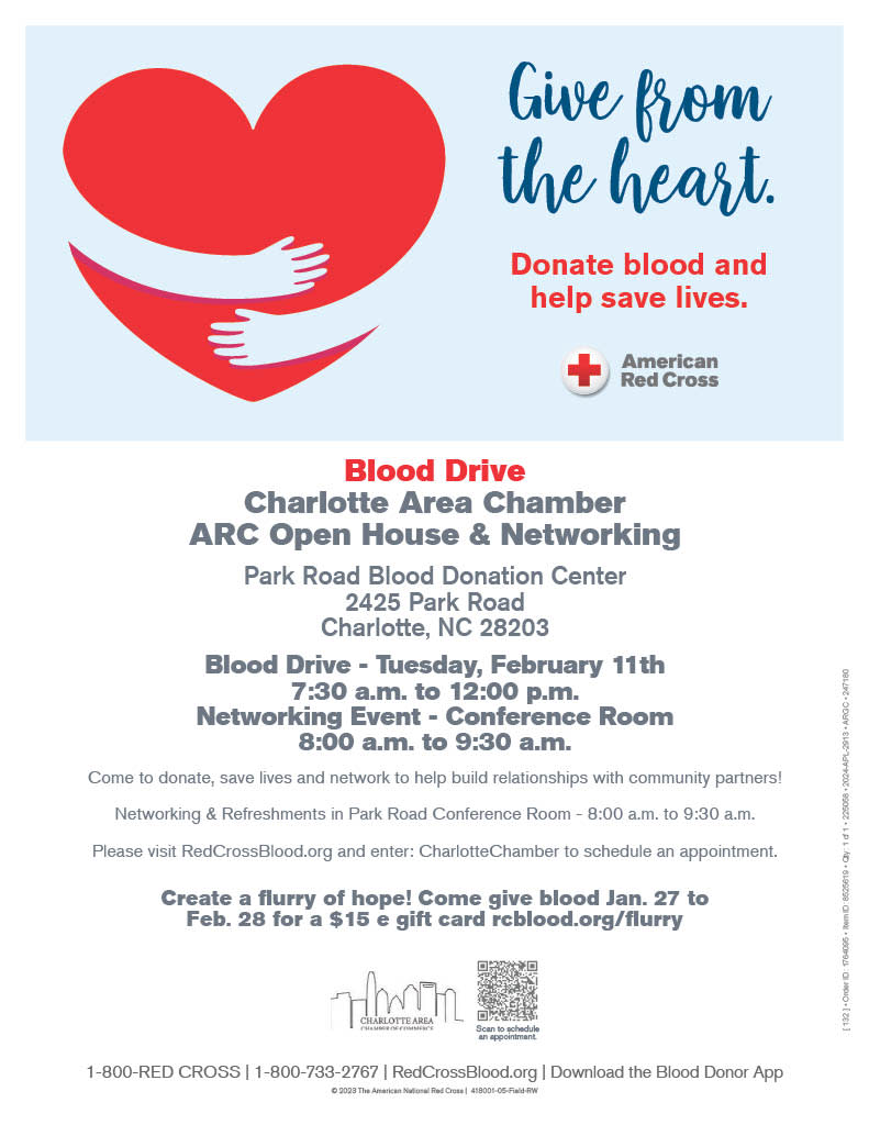 Join us for Coffee with the Chamber at the American Red Cross, 2425 Park Road, for an energizing morning with purpose — donate blood between 7:30 a.m. and 12:00pm to help replenish our community’s vital supply and receive a special gift for giving! Connect with Charlotte's business professionals over coffee from 8:30-9:30 a.m., where startup founders, executives, and morning enthusiasts alike come to brew new relationships and spark fresh ideas.