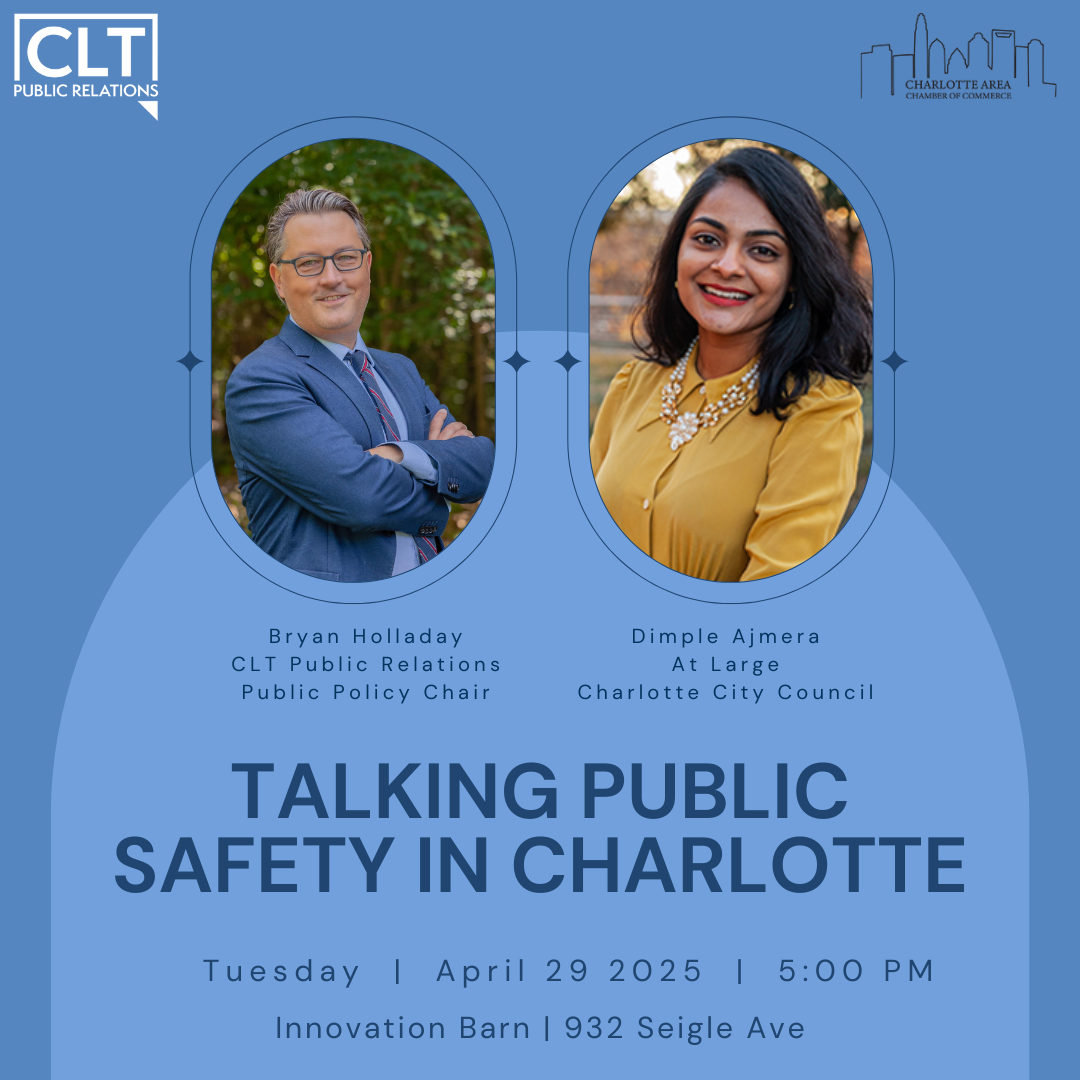 Join Bryan Holladay, Public Policy Chair of the Charlotte Area Chamber and Dimple Ajmera, Charlotte City Council Member, At-Large