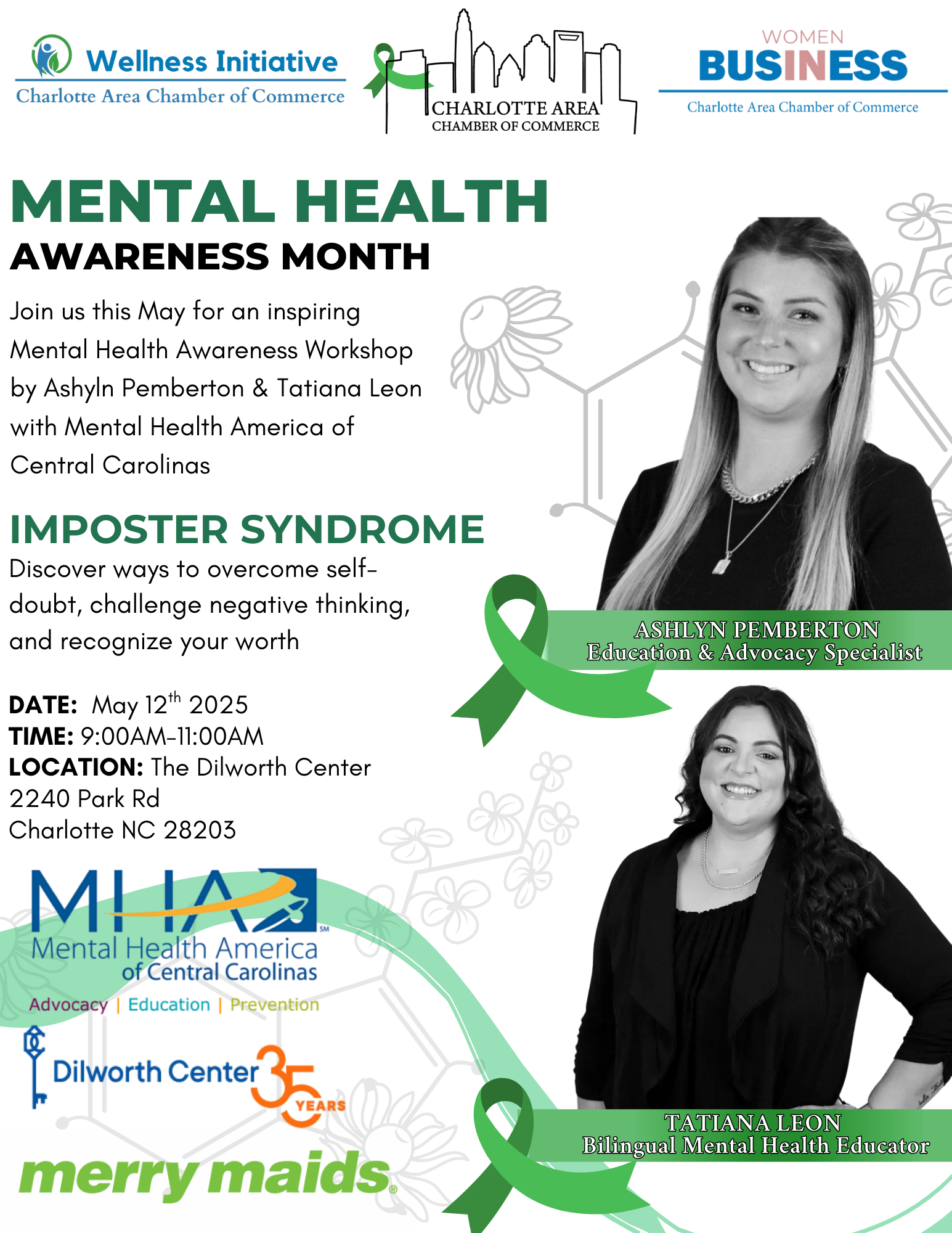 Join us this May for an inspiring Mental Health Awareness Month event—a collaboration between our Women in Business, Wellness Initiative Committee and the Mental Health America of Central Carolinas. This empowering experience is designed to support your well-being and help you unlock your full potential, both personally and professionally.