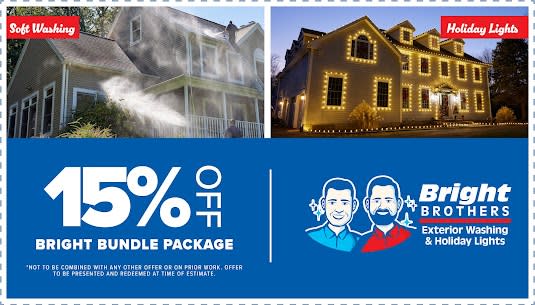 Hi Charlotte Area Chamber members. Bright Brothers of South Charlotte is offering a 15% discount on our Bright Bundle package for soft washing, pressure washing, gutter clean out and holiday light installations.