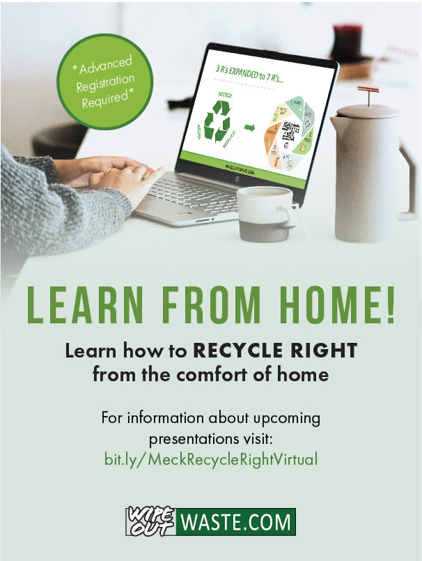 An interactive presentation and dialogue with Mecklenburg County residents on how to Recycle Right. The program is about 40 minutes, but typically requires an extra 15 minutes for questions.